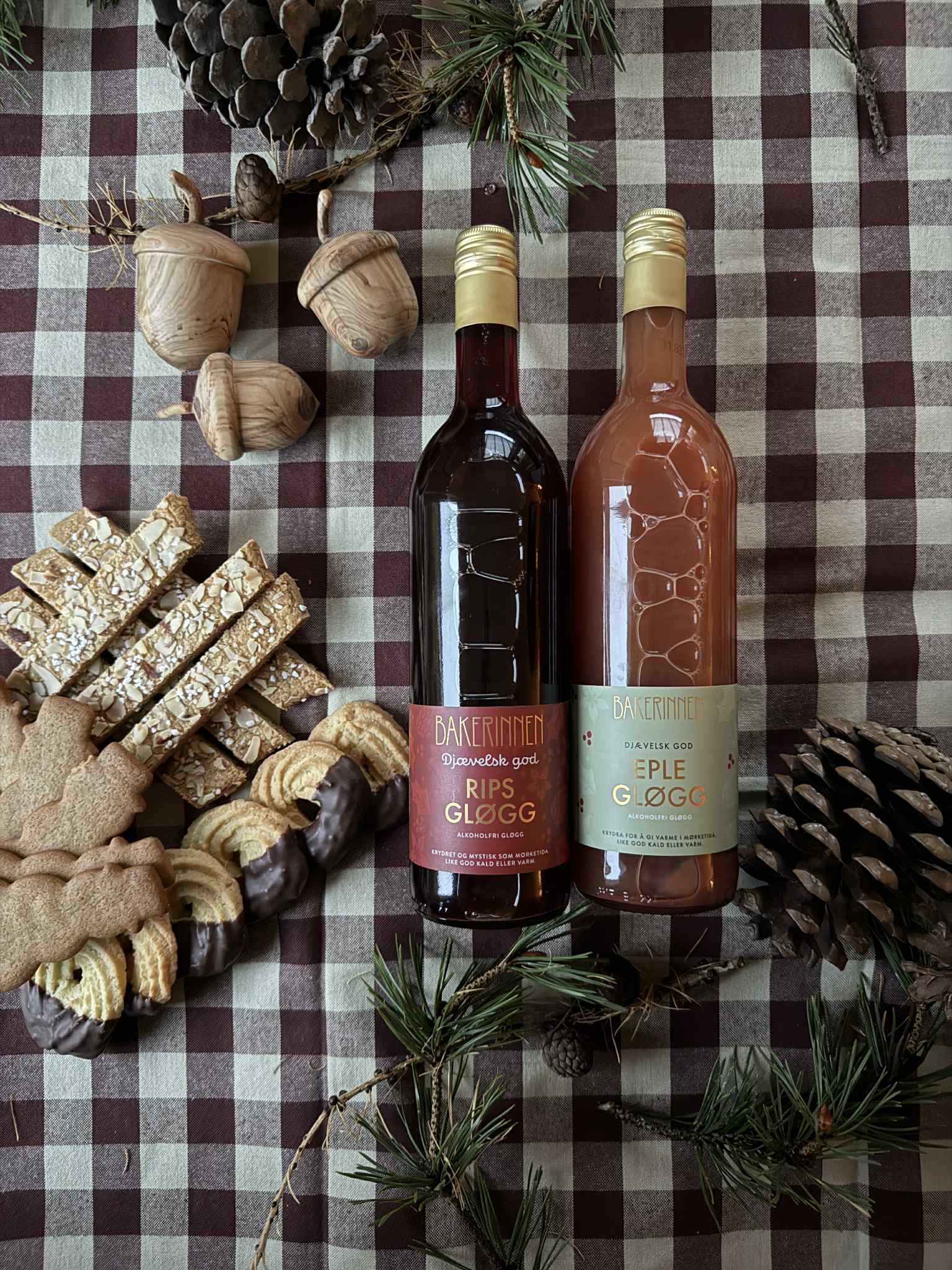 Julepakke 2 består av to flasker av Bakerinnens gløgg og et utvalg julekaker produsert i bakeriet med ekte og ærlige råvarer. Gløggen er produsert i Norge med norske råvarer og er uten tilsetningsstoffer.